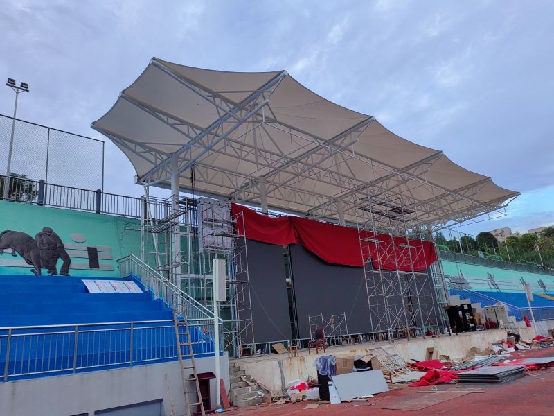 咨询我们膜材可在工厂提前裁剪,现场仅需吊装、张拉和固定,施工流程简化。